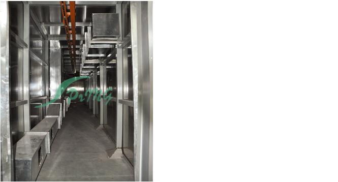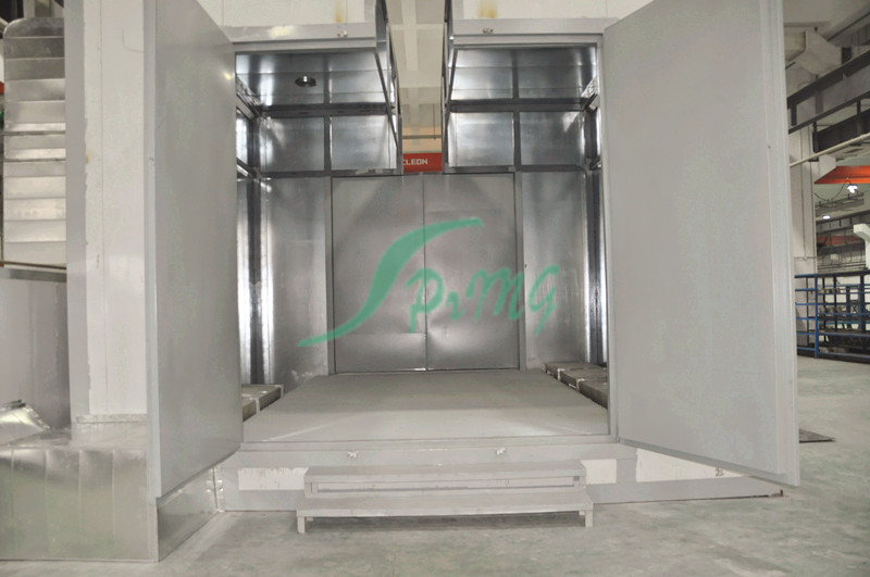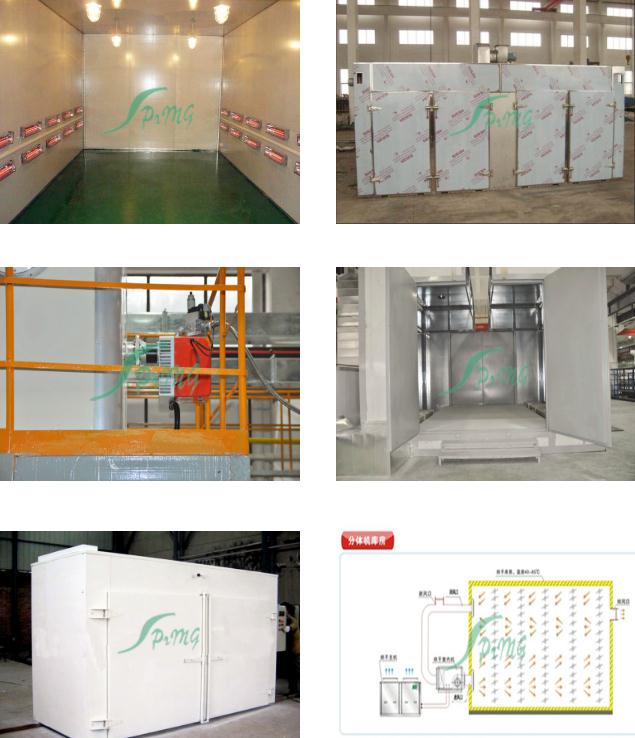 烘烤房又稱烘干固化房 針對(duì)大型電氣、電機(jī)、涂料、化學(xué)用品、外表進(jìn)行固化、食品及各類產(chǎn)品的水分烘干 先進(jìn)的熱風(fēng)循環(huán)系統(tǒng)使工作室溫度分布均勻。低噪聲風(fēng)機(jī)系統(tǒng)創(chuàng)造了安靜的工作環(huán)境。密封電熱管加熱,性能穩(wěn)定,壽命長(zhǎng)。底部裝有軌道并配有供裝載工件或試件 的臺(tái)車,工作效率高。進(jìn)、排氣裝置,可調(diào)節(jié)工作室的換氣量。獨(dú)立控制臺(tái),即可就近控制,也可集中到控制室統(tǒng)一控制?蛇x用進(jìn)口高精度智能程序控溫儀表控 溫,P.I.D參數(shù)自調(diào)整,固態(tài)繼電器調(diào)功,可預(yù)設(shè)多段程序控溫曲線。智能控溫儀表控溫,控制靈敏可靠。記錄儀記錄工作全過程溫度曲線。超溫保護(hù)裝置能發(fā) 出聲光報(bào)警信號(hào)并切斷加熱電源,保護(hù)設(shè)備及工件的安全。